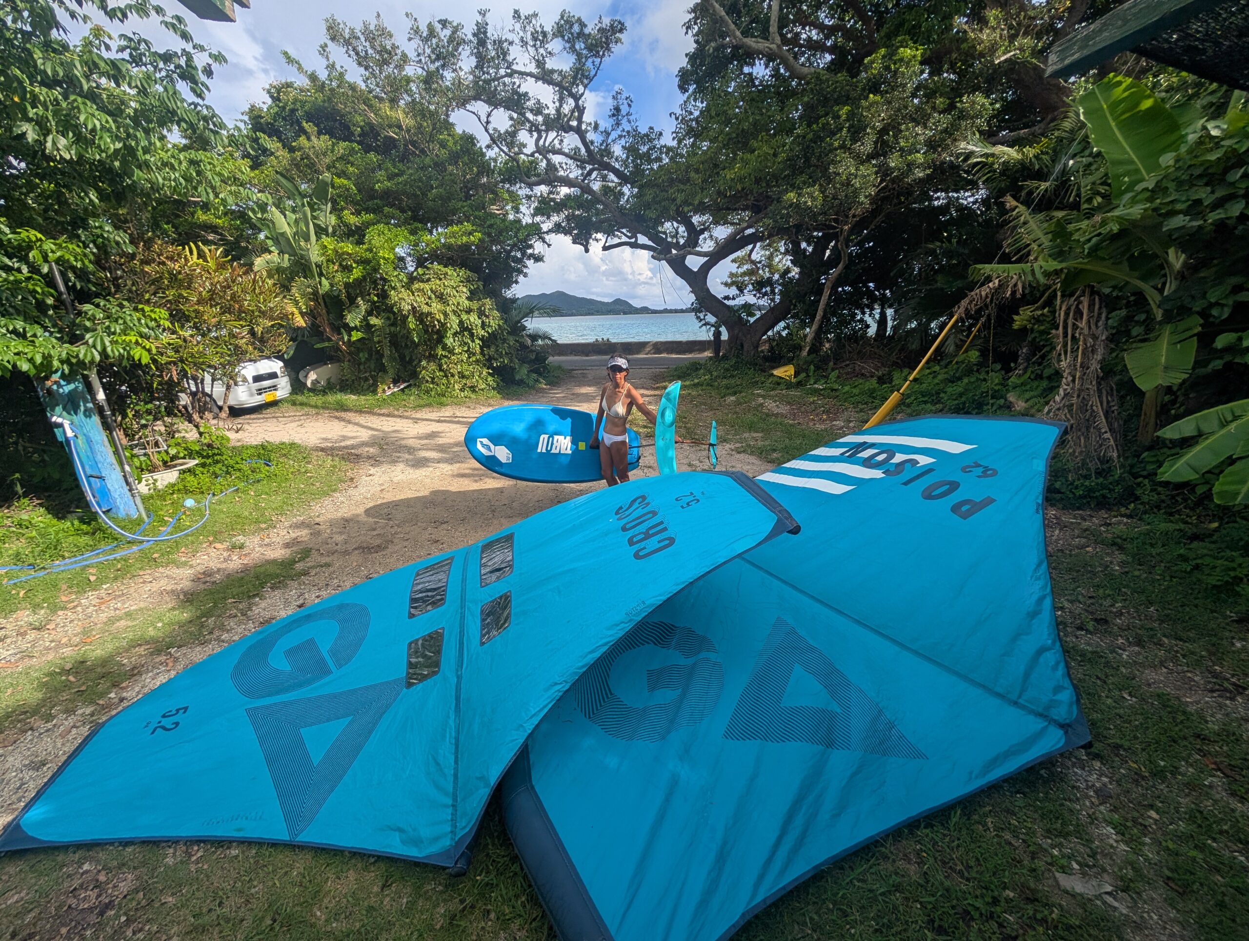 初回は大きいスクールボードで、ウイングをトリムしながら風に乗って走ります。初回から浮き上がって走るのはかなり難しいですが、ぜひ奄美ブルーの美しい海で、その日への第一歩を踏み出してください!
